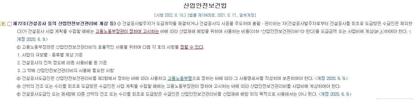 제72조(건설공사 등의 산업안전보건관리비 계상 등)